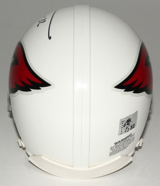 Riddell mini-helmet. Hand-signed in black felt tip pen by Tyrann Mathieu (Cardinals). The autograph includes an official Tyrann Mathieu player hologram for authenticity purposes.Authentication: Tyrann Mathieu Hologram