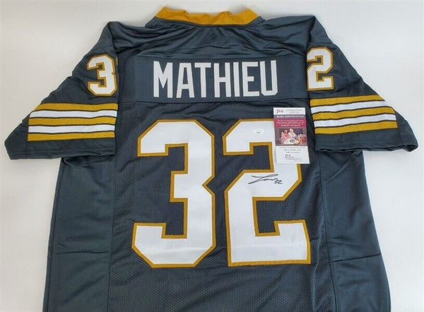 Custom on-field style jersey. Everything sewn on, size XL. Hand-signed by Tyrann Mathieu.The lot / autograph(s) includes an official James Spence Authentication (JSA) hologram and matching COA for authenticity purposes. The signing of this item was witnessed by JSA.Authentication: JSA COA