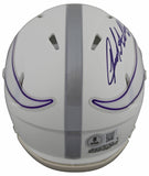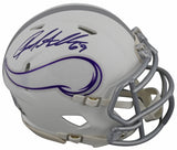 This Autographed 2024 On Field Alternate Speed Mini Helmet has been Personally Signed by Jared Allen of the Minnesota Vikings. This item is 100% Authentic to include a hologram by Beckett Authentication Services. This item will come with an affixed Beckett Authentication Services (BAS) authentication sticker, which includes a scannable QR code to verify authenticity. Please note that Beckett no longer provides serial-numbered COA cards, and the attached BAS sticker will serve as the complete authentication for this item. This is a BAS Witnessed Protection Program item which means a Beckett Authentication Service representative was present when this item was being signed. We conducted an autograph signing with Jared Allen where multiples of the same item were signed. While the photographs are representative of this item, the size, placement and strength of the signature may vary. Each item is hand signed, therefore, each autograph is unique. This item can be verified through BAS Witnessed.