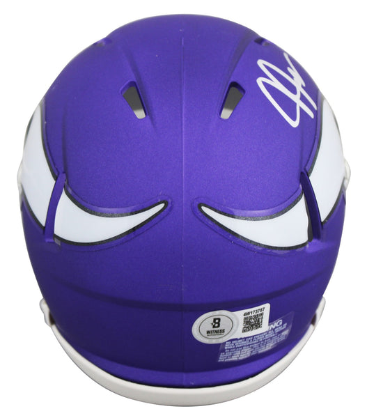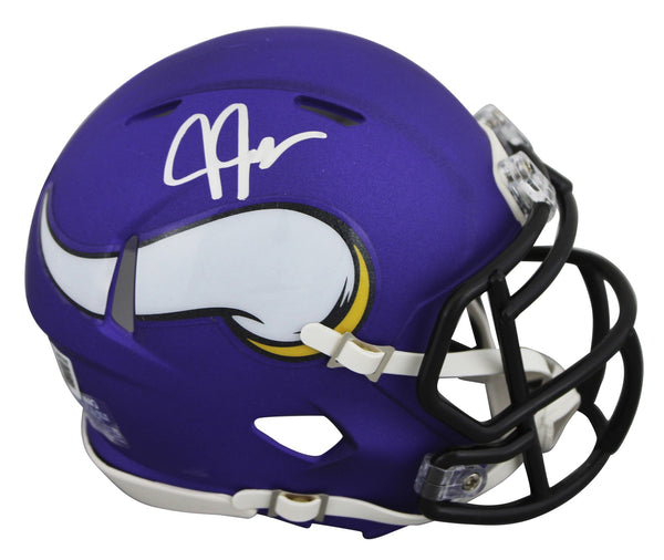 This Autographed Mini Helmet W/ Uv Mirrored Back Acrylic Display Case has been Personally Signed by Justin Jefferson of the Minnesota Vikings. This item is 100% Authentic to include a Certificate of Authenticity (COA) / hologram by Beckett Authentication Services. This is a BAS Witnessed Protection Program item which means a Beckett Authentication Service representative was present when this item was being signed. We conducted an autograph signing with Justin Jefferson where multiples of the same item were signed. While the photographs are representative of this item, the size, placement and strength of the signature may vary. Each item is hand signed, therefore, each autograph is unique. This item can be verified through BAS Witnessed.
