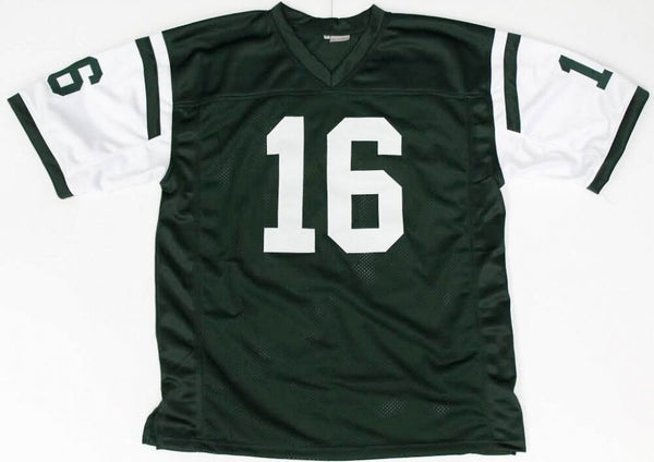 Custom on-field style jersey. Everything is sewn on, size XL. Hand signed in black felt-tip pen by Vinny Testaverde. The autograph includes an official James Spence Authentication (JSA) hologram for authenticity purposes.Authentication: JSA Hologram