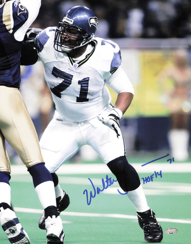 Walter Jones Autographed 11x14 Photo Seattle Seahawks "HOF 14" MCS Holo #64162