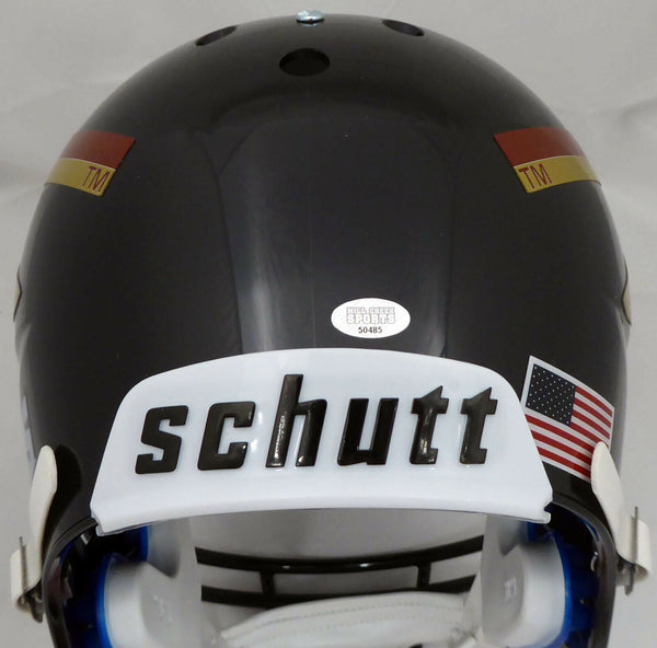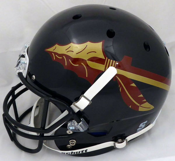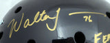 This is a Black Chrome Full Size FSU Replica Helmet that has been hand signed by Walter Jones. Along with the autograph, this item also comes with the inscription which reads "Fear The Spear!". This item was signed in the presence of a Mill Creek Sports representative and comes with their serial numbered hologram and matching certificate of authenticity.A The signature is spidering a little, as shown in the pictures.