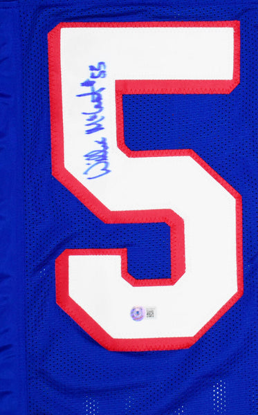 Willie Mcginest Autographed Blue Pro Style Jersey- Beckett Hologram *Blue THIS IS NOT AN NFL JERSEY. THIS HAS NO TAGS, NO LOGOS, NO EMBLEMS. This is a Hand Autograph of Willie McGinest on a custom made (Non Name Brand) authentic style jersey with stitched letters and numbers. This item has a Beckett Authentication, which comes with a Beckett numbered hologram and a QR code for verification. You can view this item on the Beckett Authentication website and it shows when and where the item was signed. It was signed either at a public autograph appearance or a private signing. This is a stock photo of the item. Although you may not receive this exact item, the item you receive is virtually identical and brand new in great shape. Jersey size is XL.