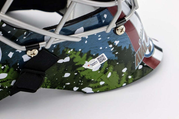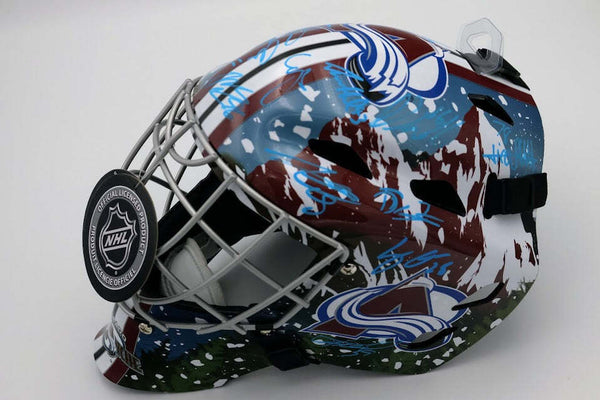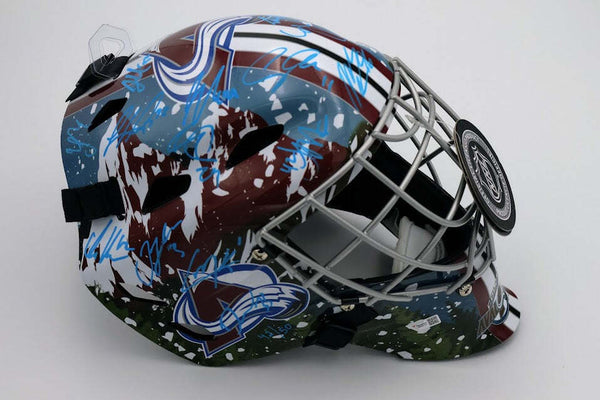 Avs team signed custom goalie helmet signed by the 2022 Stanley Cup Champions Colorado Avalanche.Hand-signed autographs by Alex Newhook, Andrew Cogliano, Cale Makar, Darcy Kuemper, Devon Toews, Erik Johnson, Gabriel Landeskog, J.T. Compher, Jack Johnson, Josh Manson, Logan O'Connor, Mikko Rantanen, Nathan MacKinnon, Nico Sturm, Nicolas Aube-Kubel, Pavel Francouz, Samuel Girard and Valeri Nichushkin Limited Edition Helmet- Most likely never to be signed by these same players in the future, makes this a very collectible helmet. Authenticated by Fanatics. This autographed item includes a certificate of authenticity and a tamper-resistant hologram from Fanatics. This process helps to ensure the product is authentic.