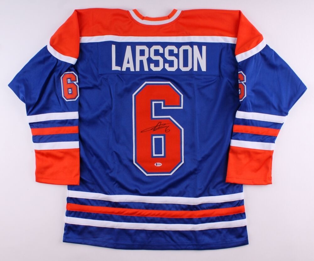 Custom on-ice style jersey. Everything is sewn on, size XL. Hand-signed in black felt-tip pen by Adam Larsson. The autograph includes an official Beckett Authentication Services serially numbered hologram and matching COA for authenticity purposes.Authentication: Beckett COA Save on shipping when buying multiple items 2nd & 3rd jerseys ship free.