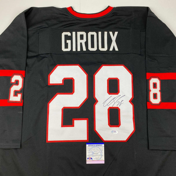 Autographed/Signed Claude Giroux Ottawa Black Hockey Jersey PSA/DNA COA Jersey has no brand names or logos. This is a custom jersey and was not manufactured by or in any manner associated with any professional sports league or manufacturer. This custom jersey carries no professional sports league designation. The item is intended to be an autographed collectible. The custom jersey displays the name and number of the player. This item in no way is affiliated with or connected to any professional sports organization. Size is XL.