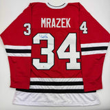 Autographed/Signed Petr Mrazek Chicago Red Hockey Jersey Beckett BAS COA Jersey has no brand names or logos. This is a custom jersey and was not manufactured by or in any manner associated with any professional sports league or manufacturer. This custom jersey carries no professional sports league designation. The item is intended to be an autographed collectible. The custom jersey displays the name and number of the player. This item in no way is affiliated with or connected to any professional sports organization. Size is XL.
