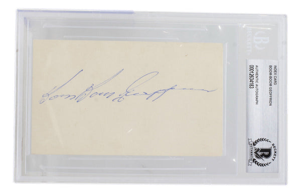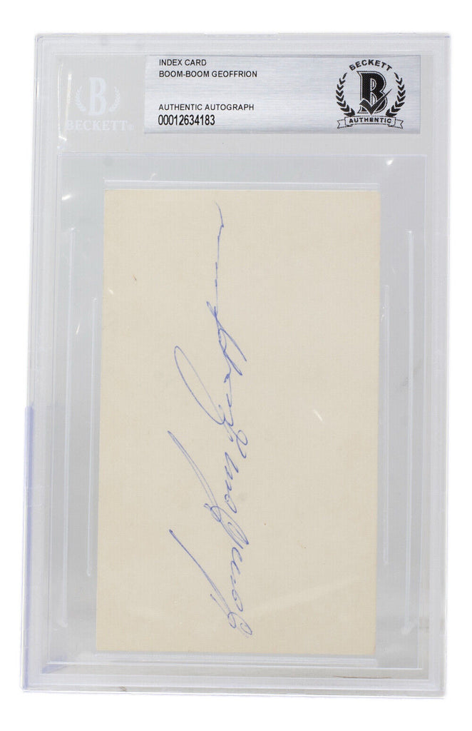 Featured is a Bernie Boom Boom Geoffrion Montreal Canadiens index card. This index card has been signed by Bernie Boom Boom Geoffrion and slabbed and authenticated by Beckett authentication services. This item would make a great addition to any sports memorabilia collection. SPECIFICATIONS Autographed By: Bernie Boom Boom Geoffrion Team: Montreal Canadiens Sport: Hockey Authentication: Beckett Grading Services