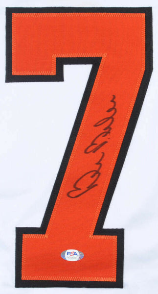 Custom on-ice style jersey. Everything is sewn on, size XL. Has been hand-signed in black felt-tip by Bill Barber (HOF). The lot / autograph(s) includes an official PSA/DNA hologram and matching COA for authenticity purposes.Authentication: PSA COA