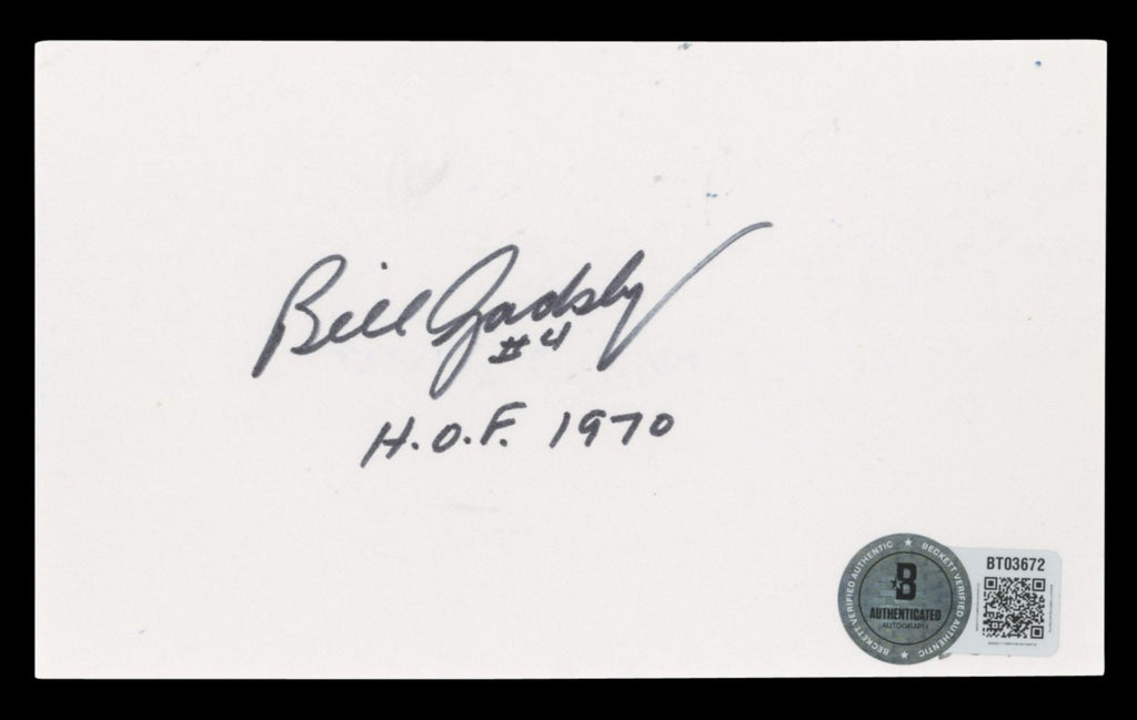 This Autographed 3x5 Index Card with the inscription of "#4 H.O.F. 1970" has been Personally Signed by Dave Wilcox of the Chicago Blackhawks. This item is 100% Authentic to include a hologram by Beckett Authentication Services. This item will come with an affixed Beckett Authentication Services (BAS) authentication sticker, which includes a scannable QR code to verify authenticity. Please note that Beckett no longer provides serial-numbered COA cards, and the attached BAS sticker will serve as the complete authentication for this item. The authenticity can be verified on Beckett Authentication Services website.