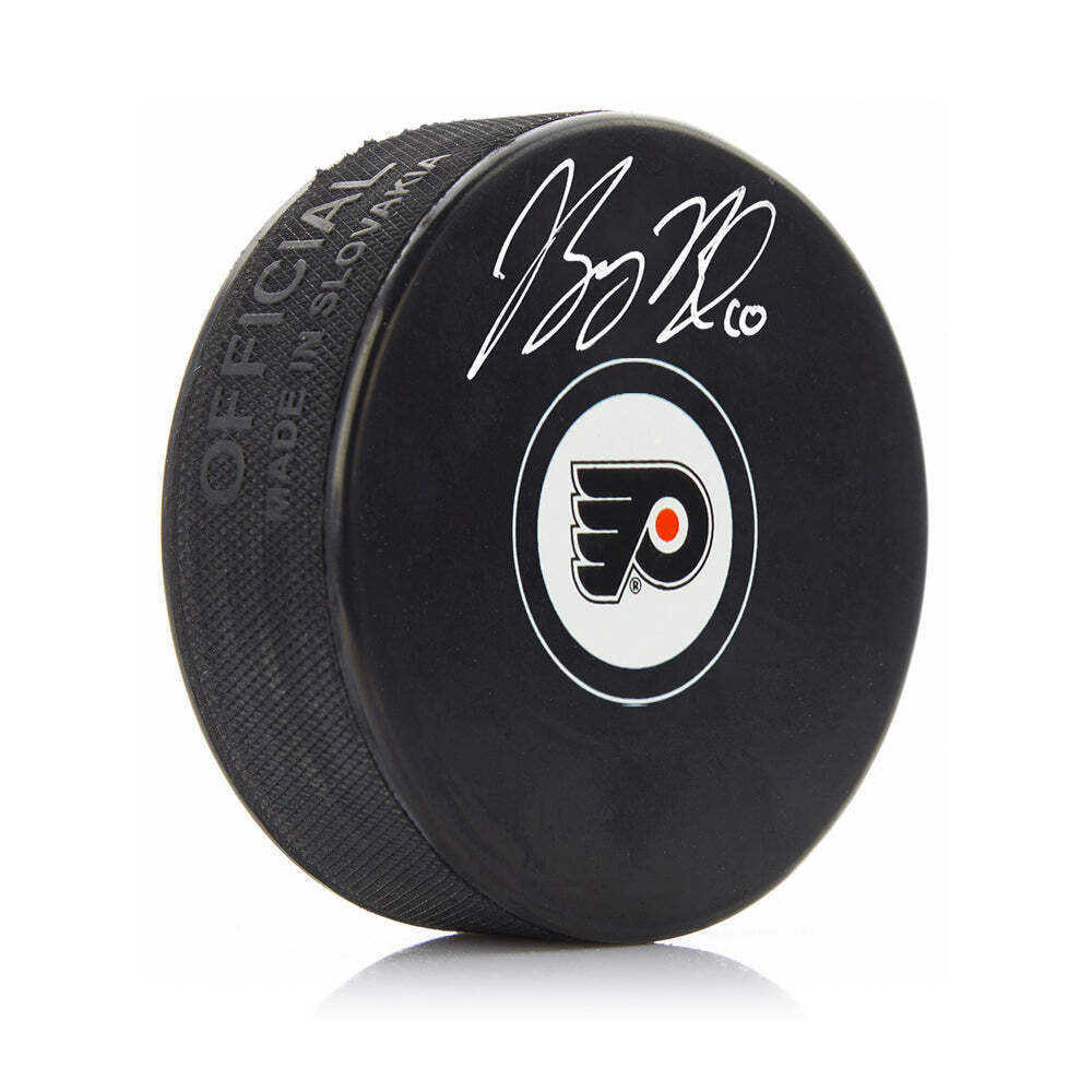 Bobby Brink Autographed Philadelphia Flyers Hockey Logo Puck with Silver Signature Official NHL logo hockey puck signed by Flyers star Bobby Brink; authenticated by Dynasty Sports This officially licensed NHL logo puck has been signed by Philadelphia Flyers star Bobby Brink It has been authenticated by Dynasty Sports during a public autograph experience. Hand-Signed by Philadelphia Flyers star Bobby Brink Signature is bold and clear on the puck Authenticated by Dynasty Sports from public autograph event on November 17, 2023 Official NHL puck Click here to purchase this puck with a sharp orange signature Custom framing options available - contact our storefront for information regarding customizing this in the frame and matting colors of your choice! Add a nameplate and team logo medallions! Please allow additional time for framing and shipping