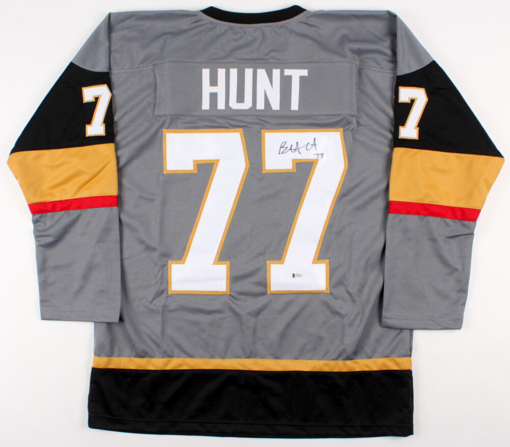 Custom on-ice style jersey. Everything sewn on, size XL. Hand-signed in black felt-tip pen by Brad Hunt. The lot / autograph(s) includes an official Beckett Authentication Services serially numbered hologram and matching COA for authenticity purposes.Authentication: Beckett COA