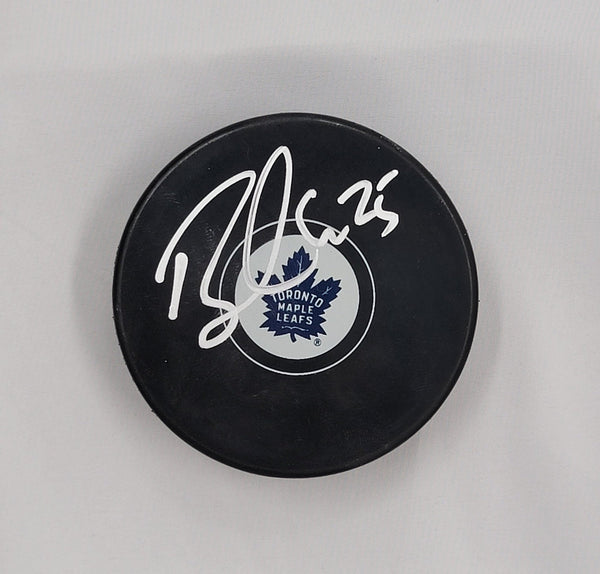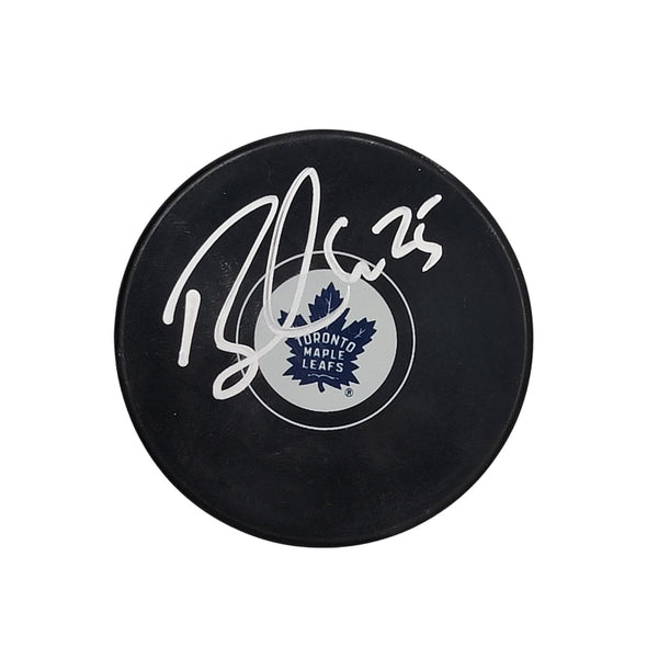 Brandon Carlo Autographed Toronto Maple Leafs Logo Puck Beckett Authenticated