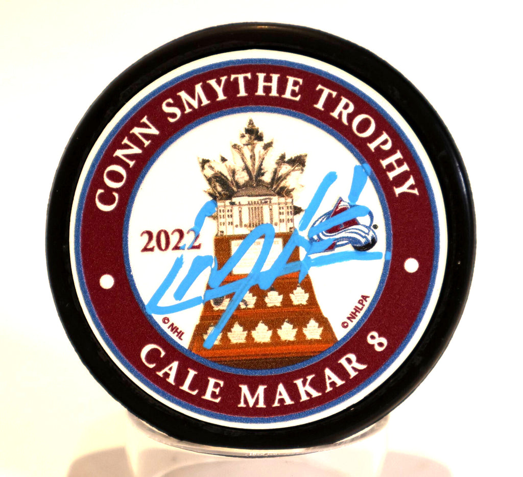 Championship Trophy Puck - Playoff MVP Excellence Celebrate hockey history with this exclusive Cale Makar autographed 2022 Conn Smythe Trophy puck. This premium collectible commemorates Makar's incredible playoff MVP performance during the Colorado Avalanche's Stanley Cup championship run, featuring his authentic signature on an official trophy-themed puck. Championship Features: Authentic Autograph: Hand-signed by Cale Makar, 2022 Conn Smythe Trophy winner Trophy Commemorative Design: Special edition puck celebrating his playoff MVP achievement Fanatics Authentication: Official certificate guaranteeing signature authenticity Historic Achievement: Honors Makar's dominant 2022 Stanley Cup playoff performance Museum-Quality Collectible: Professional display-ready memorabilia Investment Grade: Premium authenticated piece from a generational talent This isn't just a signed puck--it's a celebration of one of the most dominant playoff performances by a defenseman in NHL history. Makar's 2022 Conn Smythe Trophy win solidified his place among hockey's elite, making this authenticated memorabilia a cornerstone piece for serious collectors. Perfect for: Avalanche fans, hockey memorabilia collectors, trophy room displays, and investment portfolios seeking authenticated championship pieces.
