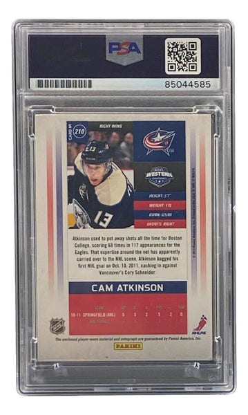 Featured is a Cam Atkinson signed 2012 Panini Contenders #210 Columbus Blue Jackets trading card. This card has been hand signed by Atkinson and has been authenticated and encapsulated by PSA. This card would make a great addition to any sports memorabilia collection! SPECIFICATIONS Autographed By: Cam Atkinson Team: Sport: Hockey Authentication: Professional Sports Authenticator (PSA)