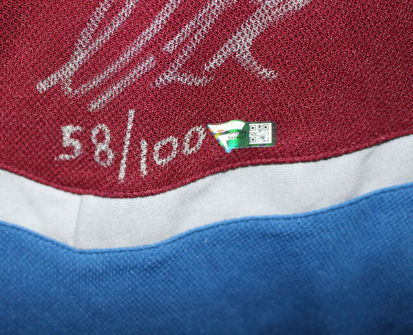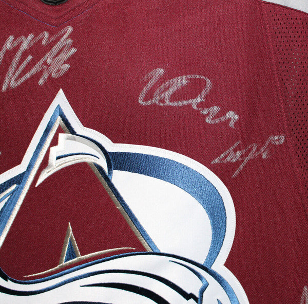 Colorado Avalanche Team Signed Burgandy Adidas 54 Jersey 20 Sigs FAN 37470 The number in the listing title is just an inventory sku for our records and is not the authentication number. The item pictured is a stock photo unless otherwise noted. This is a Colorado Avalanche burgandy Adidas size 54 jersey that was personally autographed by Nathan Mackinnon, Cale Makar, Gabriel Landeskog, Mikko Rantanen, Darcy Kuemper, Artturi Lehkonen, Pavel Francouz, Josh Manson, Erik Johnson, JT Compher, Devon Toews, Samuel Girard, Jack Johnson, Logan O'Connor, Alex Newhook, Nicholas Aube-Kubell, Darren Helm, Andrew Cogliano, Nico Sturm, Nazem Kadri, Andre Burakovsky and Valeri Nichushkin. Includes a Fanatics Authentic hologram and a certificate of authenticity from Denver Autographs.