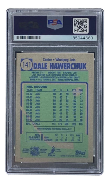 Featured is a Dale Hawerchuk signed 1990 Topps #141 Buffalo Sabres trading card. This card has been hand signed by Hawerchuk and has been authenticated and encapsulated by PSA. This card would make a great addition to any sports memorabilia collection!. SPECIFICATIONS Autographed By: Dale Hawerchuk Team: Sport: Hockey Authentication: Professional Sports Authenticator (PSA)