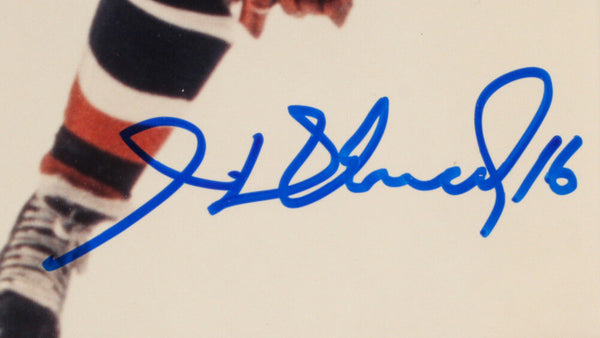 Custom framed display measures 13" x 15" in size and features a photo that is hand-signed in blue felt-tip pen by Henri Richard (HOF). Display also includes a vintage Montreal Canadiens pin. The lot / autograph(s) includes an official James Spence Authentication (JSA) hologram and matching COA for authenticity purposes.Authentication: JSA COA