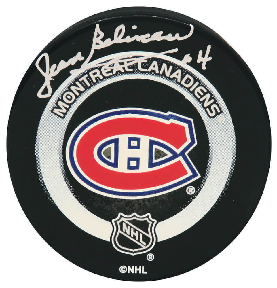 Jean Beliveau signed Montreal Canadiens team logo game hockey puck. Item comes with a Beckett Authentication tamper evident numbered sticker and matching Certificate of Authenticity which can be verified online.