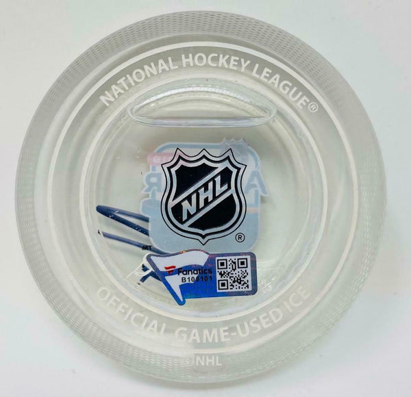 This puck was personally hand-signed by Leon Draisaitl. Each puck comes filled with melted game-used ice from the 2019 NHL All-Star Game and shipped in a Fanatics Authentic gift box. It is officially licensed by the National Hockey League and comes with a certificate of authenticity.Made in the USAFanatics Authentic Presented by Mounted MemoriesIncludes tamper-evident hologram to ensure authenticityOfficially licensed This product is guaranteed authentic and includes a Fanatics Certificate of Authenticity and an accompanying tamper-evident Fanatics Hologram.