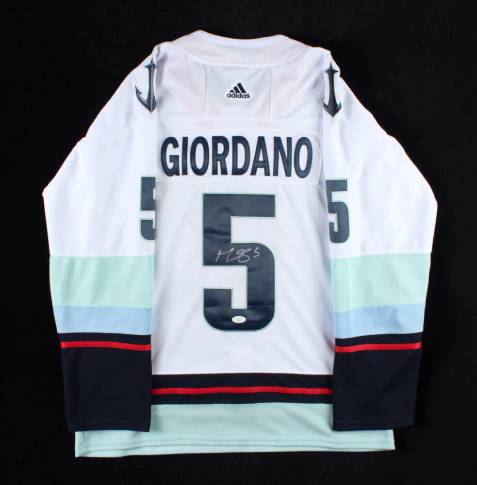 Custom on-ice style jersey. Everything sewn on, size 52. Hand-signed by Mark Giordano (Flames, Kraken)The lot / autograph(s) includes an official James Spence Authentication (JSA) hologram and matching COA for authenticity purposes.Authentication: JSA COA