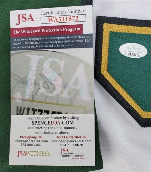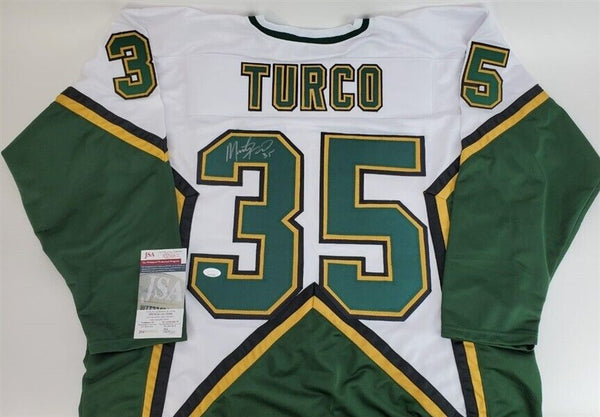 This autographed jersey has been personally hand-signed by Marty Turco of the Dallas Stars. This autograph is certified by James Spence Authentication's (JSA) Witnessed Protection Program. That means that a JSA representative was present when this item was signed. It comes with the numbered hologram and matching Certificate of Authenticity.Custom on-field style jerseys are a more affordable option for autograph seekers. These jerseys do not have any brand name or tags and are made in the Philippines. They feature stitched on names and numbers and are made to look very similar to the on-field jerseys that the players wear. These custom jerseys are very commonly used in the memorabilia industry.