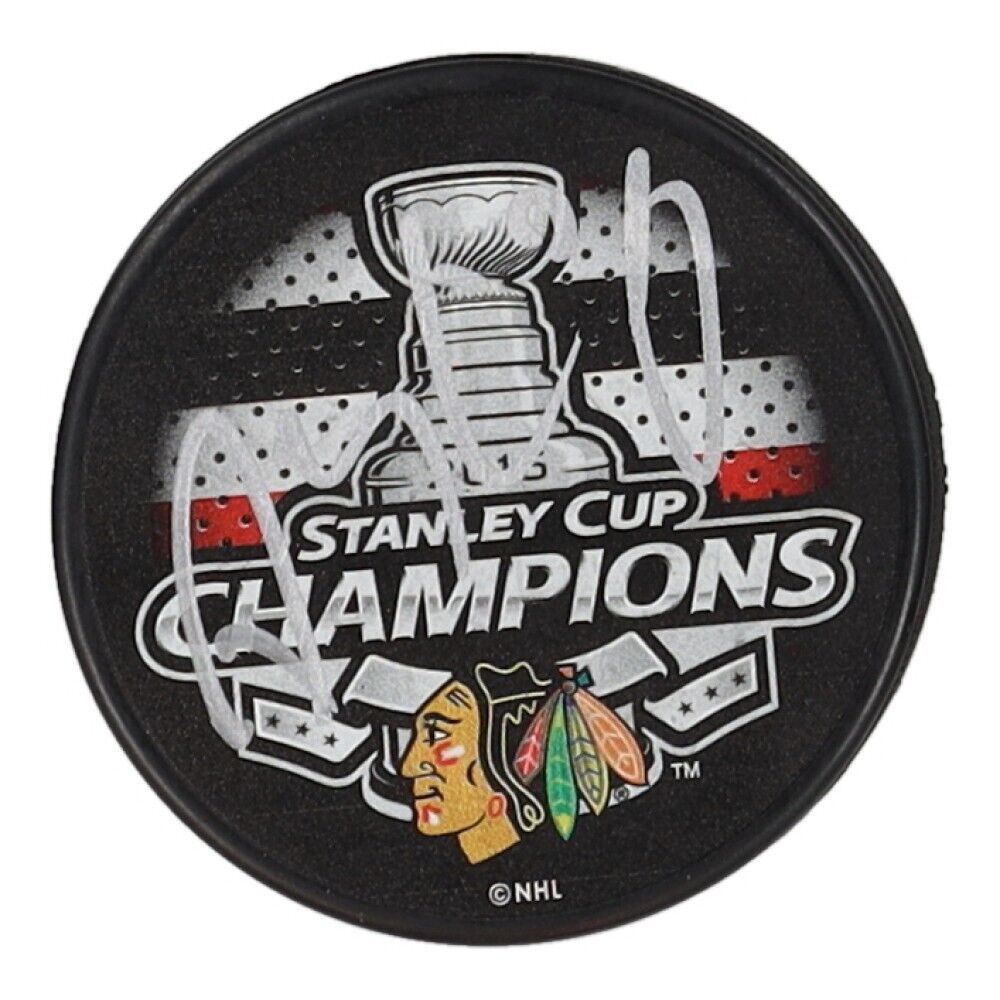 2015 Stanley Cup Champions Chicago Blackhawks logo hockey puck has been hand-signed by Patrick Sharp.The autograph(s) includes an official PSA/DNA hologram and matching COA for authenticity purposes.Authentication: PSA COA