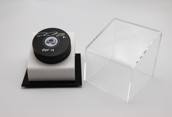 Details Colorado Avalanche Logo Puck Autographed by Peter Forsberg Inscribed "HOF 14" Silver Ink Signature JSA Authentication Deluxe Puck Case Includes Deluxe Acrylic Construction Custom Name Plate Length - 5" Width - 5" Height - 5"