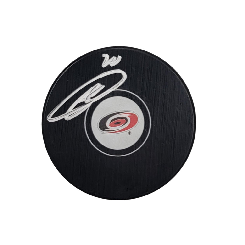 Sebastian Aho Autographed Carolina Hurricanes Logo Hockey Puck Beckett