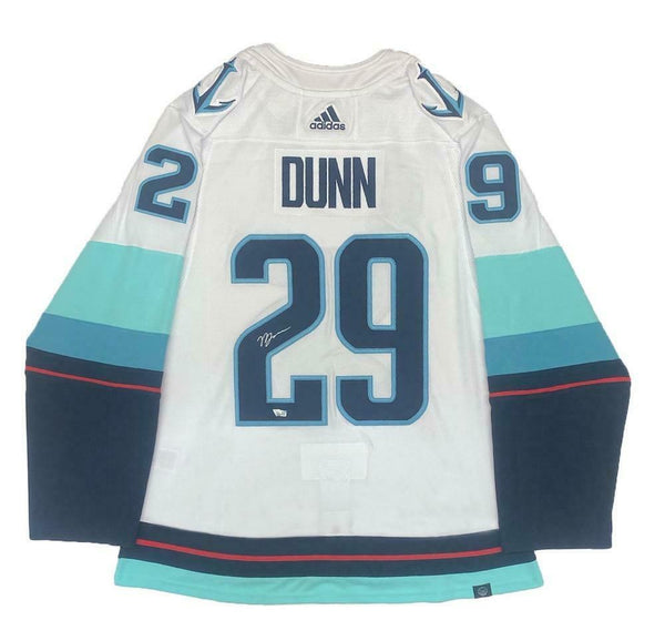 VINCE DUNN Autographed Kraken Authentic White Inaugural Patch Jersey FANATICS