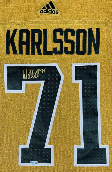 This authentic gold alternate jersey has been personally hand-signed and inscribed by william karlsson. it is officially licensed by the national hockey league and comes with an individually numbered, tamper-evident hologram from fanatics authentic. to ensure authenticity, the hologram can be reviewed online. this process helps to ensure that the product purchased is authentic and eliminates any possibility of duplication or fraud.made in the usapersonally autographed by william karlssonfanatics authentic presented by mounted memoriesincludes tamper-evident hologram to ensure authenticityofficially licensed this product is guaranteed authentic and includes a fanatics certificate of authenticity and an accompanying tamper-evident fanatics hologram.