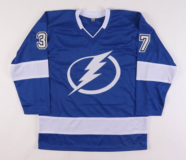 This autographed jersey has been personally hand-signed by Yanni Gourde of the Tampa Bay Lightning. This autograph is certified by James Spence Authentication (JSA). It comes with the numbered hologram for authenticity purposes.Custom on-field style jerseys are a more affordable option for autograph seekers. These jerseys do not have any brand name or tags and are made in the Philippines. They feature stitched on names and numbers and are made to look very similar to the on-field jerseys that the players wear. These custom jerseys are very commonly used in the memorabilia industry.