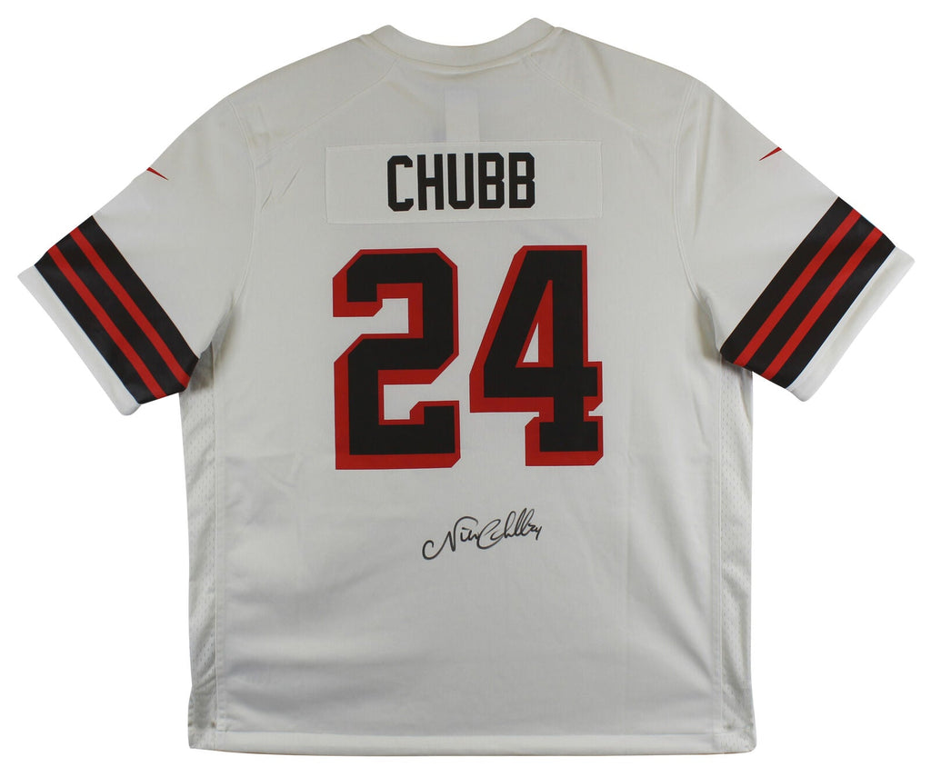 This Autographed White Nike Jersey has been Personally Signed by Nick Chubb of the Cleveland Browns. This item is 100% Authentic to include a hologram by Beckett Authentication Services. This item may come with the new Beckett Authentication hologram that has a scannable QR code rather than the traditional COA. If you would like to have a COA, you are welcome to reach out to Beckett for a printed certification once you receive your item. This is a BAS Witnessed Protection Program item which means a Beckett Authentication Service representative was present when this item was being signed. We conducted an autograph signing with Nick Chubb where multiples of the same item were signed. While the photographs are representative of this item, the size, placement and strength of the signature may vary. Each item is hand signed, therefore, each autograph is unique. This item can be verified through BAS Witnessed. This is a X-Large sized Jersey.
