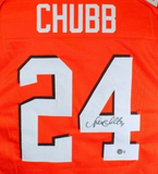 Custom on-field style jersey. Everything is sewn on, size XL. Hand-signed in black felt-tip pen by Nick Chubb.Nick Changed his Uniform Number from 31 to 24 at the end of the Preseason when #24 became available. The autograph includes an official Beckett Authentication Services serially numbered hologram and QR Code card for authenticity purposes.Authentication: Beckett QR Code card