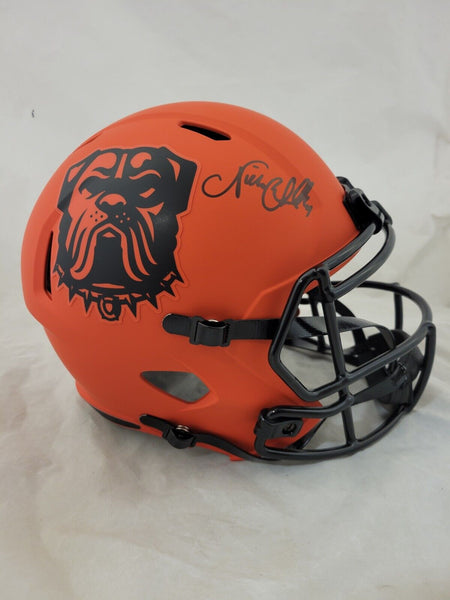 NICK CHUBB AUTOGRAPHED CLEVELAND BROWNS FULL SIZE RAVE SPEED REPLICA HELMETBECKETT QR HOLOGRAMTHIS MEANS THE HELMET WAS SIGNED WITH A BECKETT REPRESENTATIVE PRESENT SO YOU CAN BE 100% CERTAIN ITS THE REAL THING.