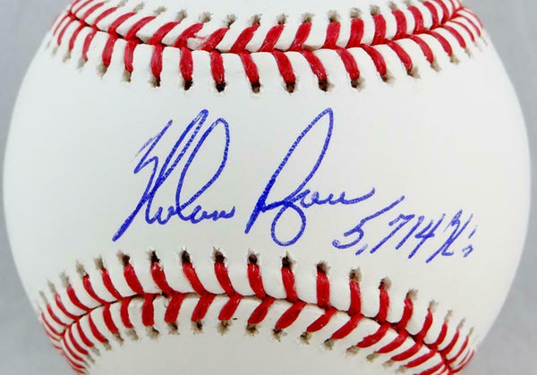 Nolan Ryan Autographed Rawlings OML Baseball With 5714 K's - AIV Hologram *Blue This is a Nolan Ryan hand autographed Rawlings Official Game Ball Major League Baseball inscribed with 5714 Ks. This item has a AIV Hologram, which comes with a numbered sticker and a Certificate of Authenticity. It was signed either at a public autograph appearance or a private signing. It also has a Nolan Ryan Hologram to ensure authenticity. This is a stock photo of the item. Although you may not receive this exact item, the item you receive is virtually identical, brand new, and in great shape.