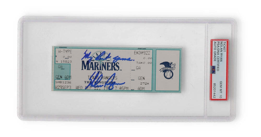 Nolan Ryan Signed Sept. 22, 1993 Original Last Game Ticket "My Last Game" PSA 10 Authentic and comes with third party authentication.