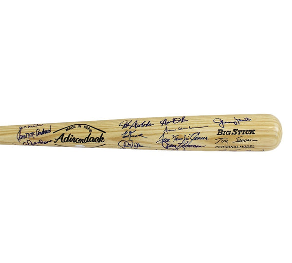 A New York Mets Adirondack Tom Seaver Edition 1969 World Series Champions Blonde MLB Bat hand signed by 23 1969 World Series Champions including Tom Seaver, Nolan Ryan, Jerry Koosman, Jim McAndrew, Al Weis, Bud Harrelson, Ed Kranepool. Ron Swoboda, Jerry Grote, Duffy Dyer. The item and signatures are in excellent condition. AUTHENTICATION: The item is accompanied by a JSA Letter of Authenticity - JSA Serial Numbered and Databased Hologram.