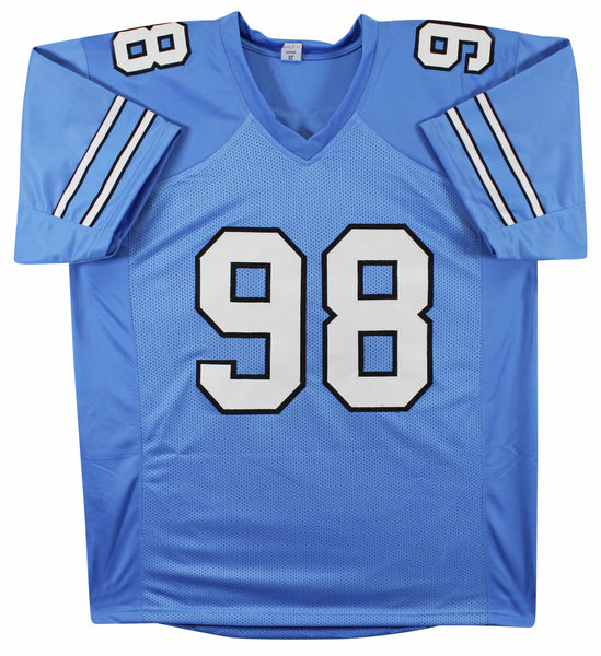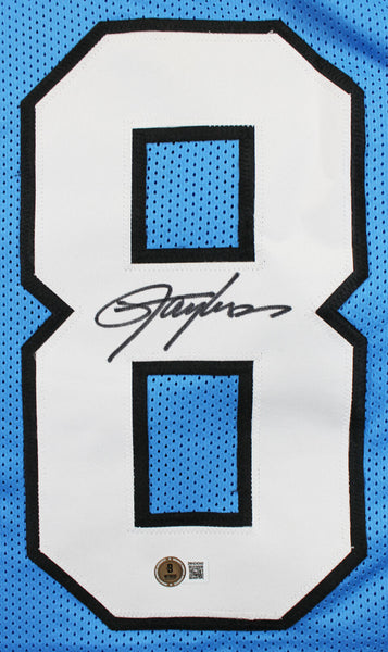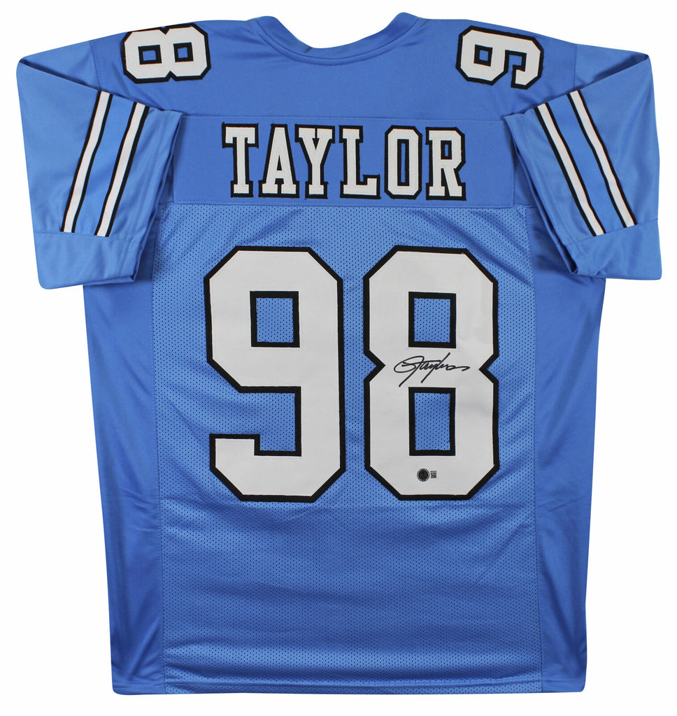This Autographed Light Blue Pro Style Jersey has been Personally Signed by Lawrence Taylor of the North Carolina Tar Heels. This item is 100% Authentic to include a hologram by Beckett Authentication Services. This item will come with the new Beckett Authentication hologram that has a scannable QR code rather than the traditional COA. If you would like to have a COA, you are welcome to reach out to Beckett for a printed certification once you receive your item. This is a BAS Witnessed Protection Program item which means a Beckett Authentication Service representative was present when this item was being signed. We conducted an autograph signing with Lawrence Taylor where multiples of the same item were signed. While the photographs are representative of this item, the size, placement and strength of the signature may vary. Each item is hand signed, therefore, each autograph is unique. This item can be verified through BAS Witnessed. This is a X-Large sized, non-branded, custom-stitched Jersey.
