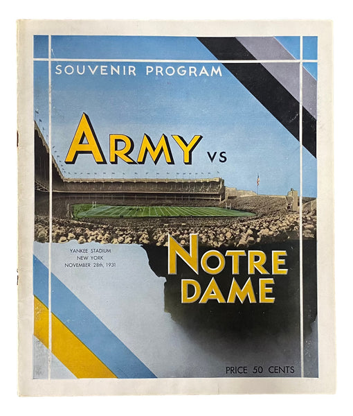 Featured is a Army vs Notre Dame November 28 1931 Official Game Program. This program would make a great addition to any sports memorabilia collection!. SPECIFICATIONS Autographed By: Team: Notre Dame Sport: Football Authentication: Beckett Grading Services