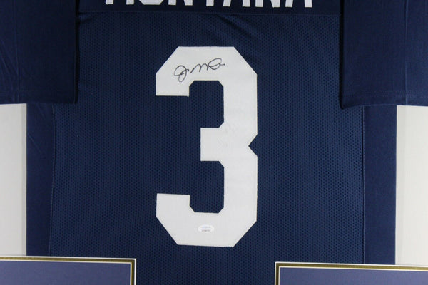 JOE MONTANA AUTOGRAPHED & PROFESSIONALLY FRAMED PRO-STYLE JERSEY(Occasionally our own stock pictures are used at times due to quantity of framing, all frames will look identical as the one pictured)THE FRAMED JERSEY MEASURES 35"x 44" & COMES WITH THE FOLLOWING:-UV Protected Acrylic-Triple Acid Free Team Colored Matting-2 High Quality 8"x10" Photos-Team LogoEvery framed autographed jersey is accompanied with a tamper-proof hologram on the signed part of the jersey from one of the main authenticators in the industry (JSA, Beckett, PSA, etc.) and can be verified on their corresponding websites to prove authenticity.