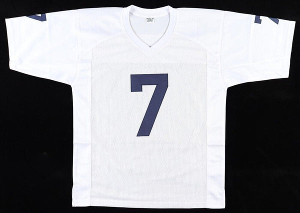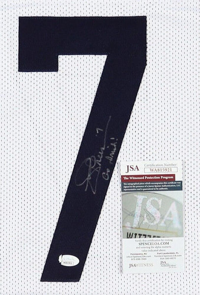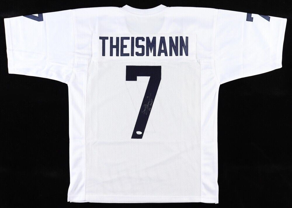 Custom on-field style jersey. Everything is sewn on, size XL. Hand-signed and inscribed in Silver felt-tip pen by Joe Theismann (Redskins). The autograph includes an official James Spence Authentication (JSA) hologram and matching COA for authenticity purposes. The signing of this item was witnessed by JSA.Authentication: JSA COA