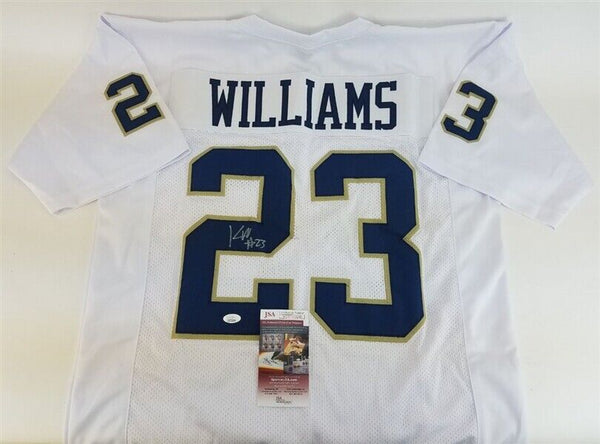 Custom on-field style jersey. Everything is sewn on, size XL. Hand-signed in silver paint pen by Kyren Williams. The lot / autograph(s) includes an official James Spence Authentication (JSA) hologram and matching COA for authenticity purposes. The signing of this item was witnessed by JSA.Authentication: JSA COA