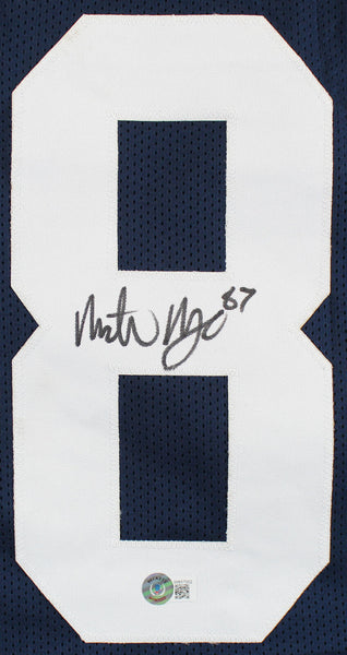 This Autographed Navy Blue Pro Style Jersey has been Personally Signed by Michael Mayer of the Notre Dame Fighting Irish. This item is 100% Authentic to include a hologram by Beckett Authentication Services. This item may come with the new Beckett Authentication hologram that has a scannable QR code rather than the traditional COA. If you would like to have a COA, you are welcome to reach out to Beckett for a printed certification once you receive your item. This is a BAS Witnessed Protection Program item which means a Beckett Authentication Service representative was present when this item was being signed. We conducted an autograph signing with Michael Mayer where multiples of the same item were signed. While the photographs are representative of this item, the size, placement and strength of the signature may vary. Each item is hand signed, therefore, each autograph is unique. This item can be verified through BAS Witnessed. This is a X-Large sized, non-branded, custom-stitched Jersey.