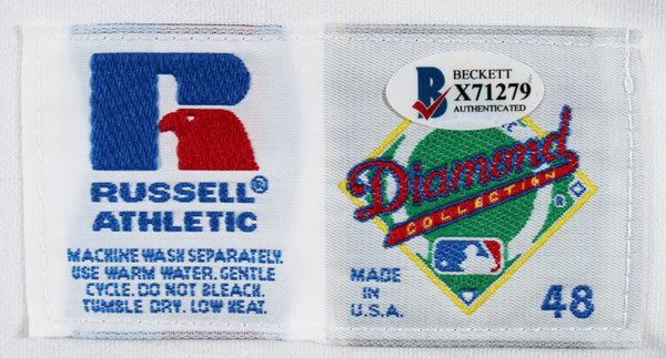 This Autographed White Russell Athletic Size 48 Jersey has been Personally Signed by Dennis Eckersley of the Oakland Athletics. This item is 100% Authentic to include a Certificate of Authenticity (COA) / hologram by Beckett Authentication Services. The authenticity can be verified on Beckett Authentication Services website.