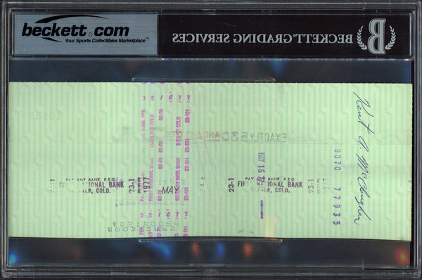 This is a Check, approximately 3.5x8.5, that has been hand signed by Al Davis. The condition of the signature was graded a Gem Mint 10 by Beckett BAS. It has been certified authentic by Beckett Authentication Services (BAS) and comes encapsulated in their tamper-proof holder.