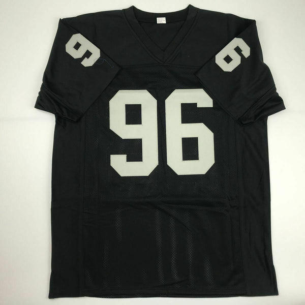 Autographed/Signed CLELIN FERRELL Oakland Black Football Jersey JSA COA Auto This is a custom jersey and was not manufactured by or in any manner associated with any professional sports league or manufacturer. This custom jersey carries no professional sports league designation. The item is intended to be an autographed collectible. Reference of team in the title is to allow the purchaser a point of association. The custom jersey displays the name, number and authenticated signature of the player. This item in no way is affiliated with or connected to any professional sports organization. The autograph, as always is guaranteed to be authentic and has been certified as authentic by a third-party, trusted authenticator. Size is XL unless otherwise noted.