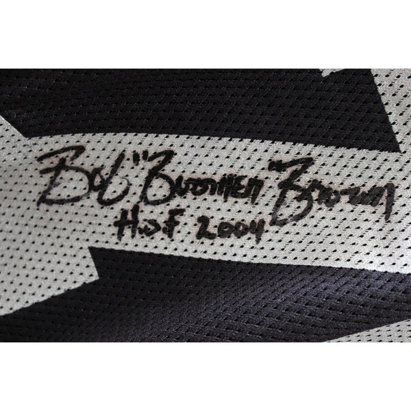 The number in the listing title is just an inventory sku for our records and is not the authentication number. This is the exact item that you will receive so please see pictures for condition. This is a Oakland Raiders Reebok jersey that was personally autographed by Bob Brown with HOF inscription. Includes a certificate of authenticity from Beckett Authentication Services (BAS) and Denver Autographs.FREE SHIPPING within the USA on orders over $10!
