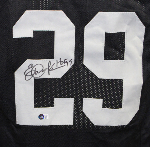 Eric Dickerson Autographed/Signed Pro Style XL Black Jersey Beckett 41017 The number in the listing title is just an inventory sku for our records and is not the authentication number. The item pictured is a stock photo unless otherwise noted. This is a Pro Style Black size XL Jersey that was personally autographed by Eric Dickerson. Includes a certificate of authenticity from Beckett Authentication Services (BAS) and Denver Autographs.